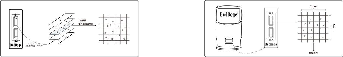 自適應-智能自動對焦技術能夠自適應性地調整焦距(Z軸掃描),確保在不同區(qū)域、不同狀態(tài)下的細胞圖像清晰、銳利。配合X、Y軸精密運動,可實現(xiàn)多區(qū)域圖像采集(最高21個靶面);細胞計數(shù)片采用兩孔設計,0.1mm計數(shù)池高度,細胞沉降快、分層少,計數(shù)更準確。