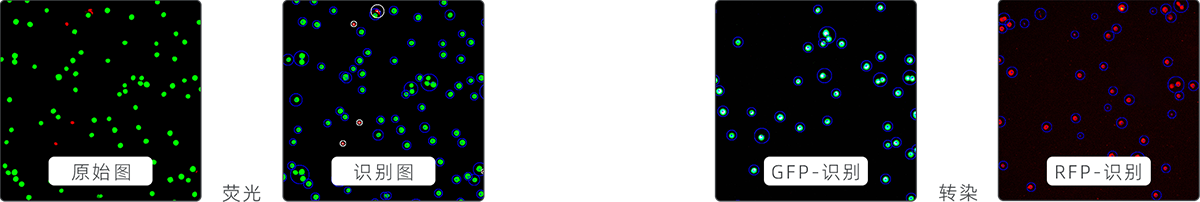 雙色熒光計數(shù):利用AOPI熒光染料,進行紅綠雙色熒光標記的細胞實驗;轉染率測定:可以測定綠色熒光蛋白(GFP)和紅色熒光蛋白(RFP)的轉染效率。