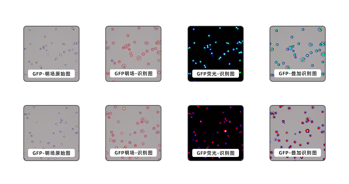 博大博聚熒光細(xì)胞計(jì)數(shù)、分析儀均配置了“轉(zhuǎn)染實(shí)驗(yàn)”模式,設(shè)計(jì)用于處理熒光標(biāo)記的細(xì)胞,如“綠色熒光蛋白GFP”和“紅色熒光蛋白R(shí)FP”(其他熒光蛋白類(lèi)型的分析模式可按需定制)。儀器配備智能分析功能,可以自動(dòng)計(jì)數(shù)和分析熒光標(biāo)記的細(xì)胞,減少人為誤差。